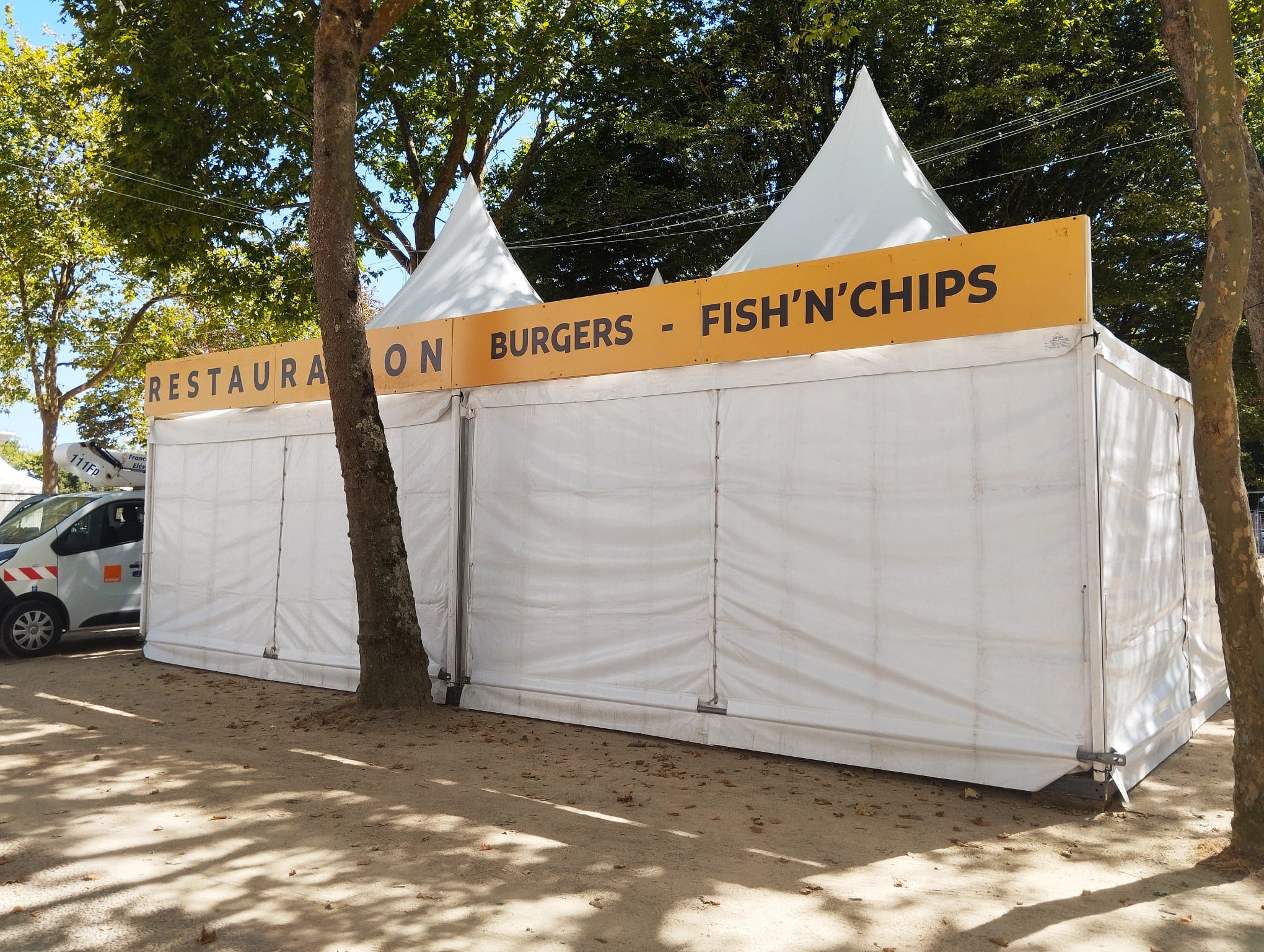Pour cette édition 2025, nous avons installé des pagodes de dimensions 3x3m, 4x4m et 5x5m H2,50m, certaines avec plancher lesté et d’autres sans plancher avec plots de lestage.